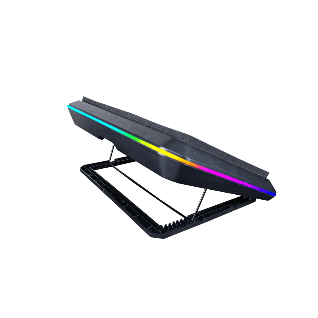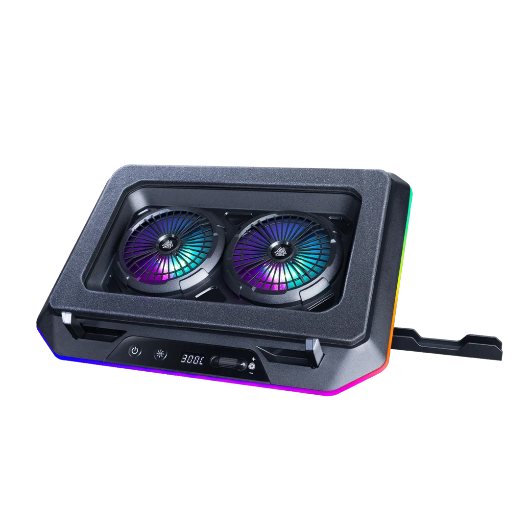 ที่วางโน๊ตบุ๊ค รุ่น TYPE CP7 มาพร้อมพัดลมระบายอากาศขนาดใหญ่ 2 ตัว ที่ปรับแรงลมได้ ให้ความเย็นได้ทั่วถึง มีไฟ RGB 11 โหมด และสามารถปรับระดับความชันได้ 7 ระดับ มีขาวางโทรศัพท์ให้ใช้งานสะดวก รองรับโน้ตบุ๊คตั้งแต่ขนาด 14 – 17 นิ้ว และยังมีพอร์ต USB-A , USB-C ให้เชื่อมต่ออุปกรณ์ได้สะดวกยิ่งขึ้น