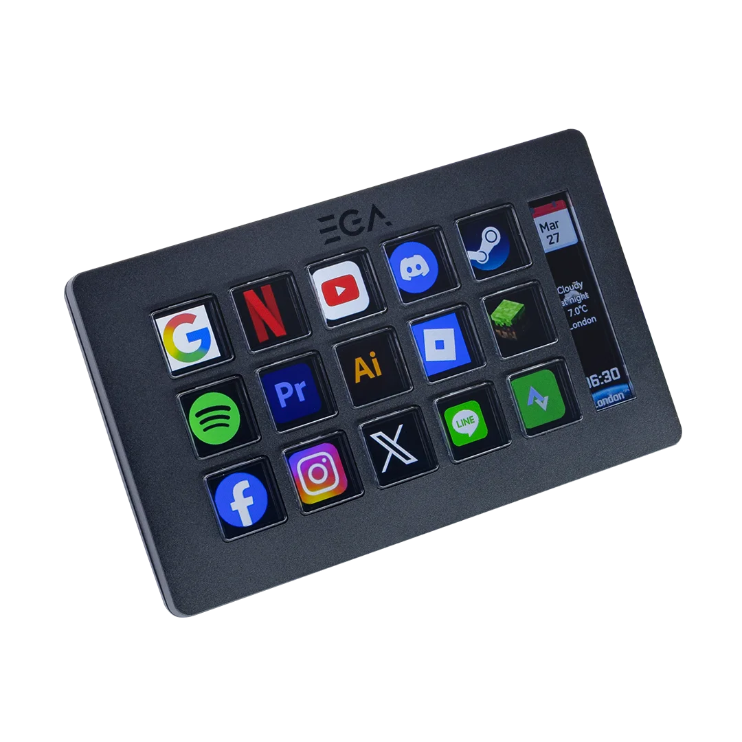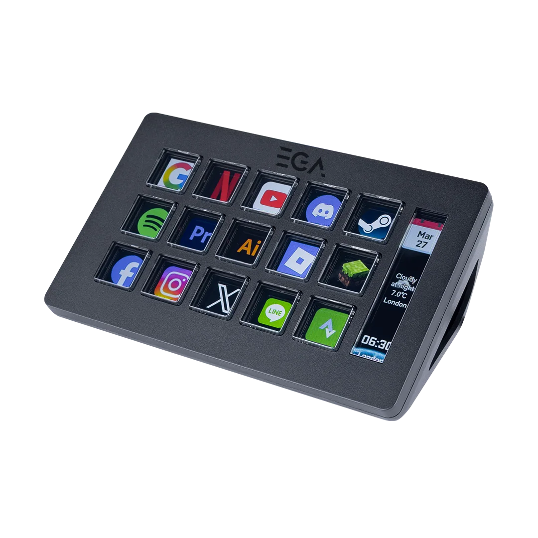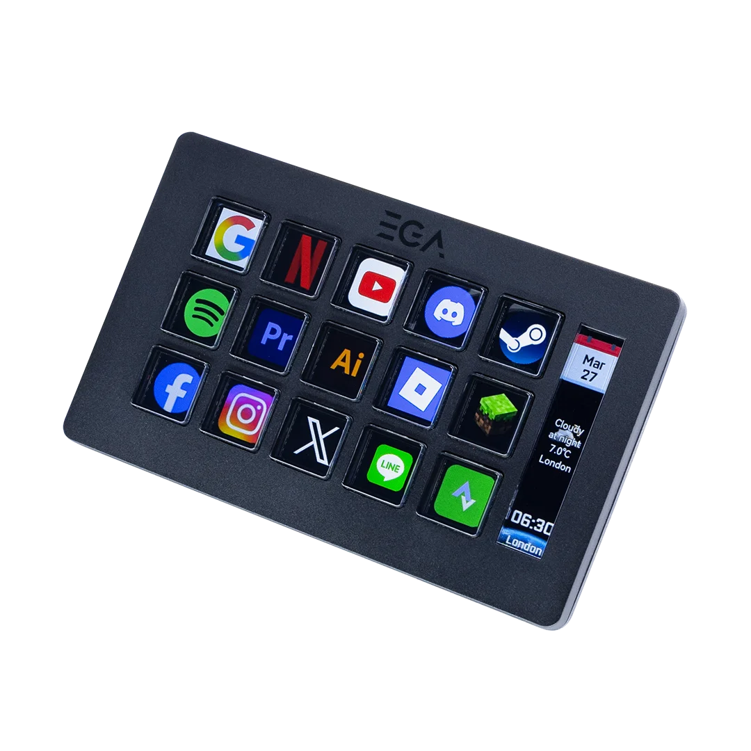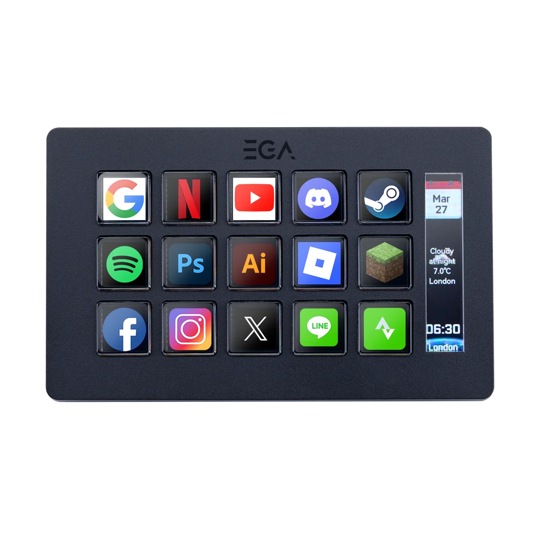 แท่น Stream Dock รุ่น DK1 Pro ตั้งค่าปุ่มลัดอิสระได้ 15 ปุ่ม เพิ่มความเร็วในการเล่นเกม ทำงาน หรือสตรีม มีหน้าจอแสดงสถานะและข้อมูลสำคัญ รองรับ Macro สูงสุด 4 Layers สลับคำสั่งได้หลากหลายยิ่งกว่าเดิม เสียบแล้วใช้งานได้ทันที ไม่ต้องตั้งค่าให้ยุ่งยาก ใช้งานได้ทั้งระบบ Windows และ macOS