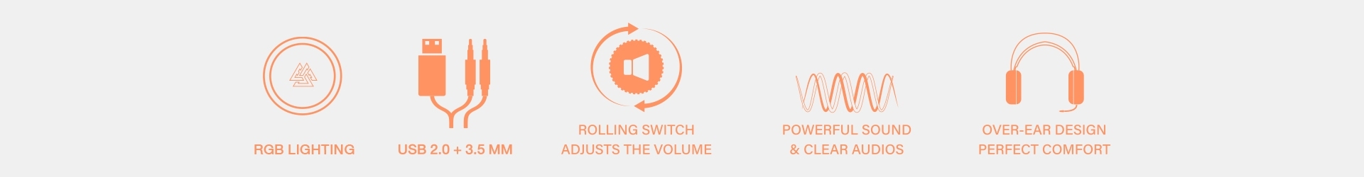 หูฟังระบบเสียงทรงพลังที่พร้อมตอบสนองทุกจังหวะ มาพร้อมสายคาดศีรษะที่มีความแข็งแรงแบบปรับได้เพื่อความพอดีกับศีรษะ ควบคุมเสียงง่ายดายด้วยปุ่มปรับแบบหมุนได้ ไมโครโฟนปรับได้อิสระและฟองน้ำรองหูฟังลดเสียงรบกวน ระบบไฟ RGB เพิ่มสีสันให้บรรยากาศการเล่นเกมส์ของคุณสนุกยิ่งขึ้นด้วยไฟ RGB