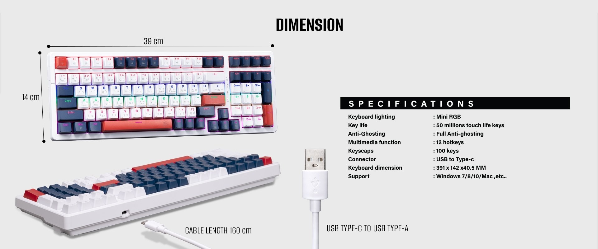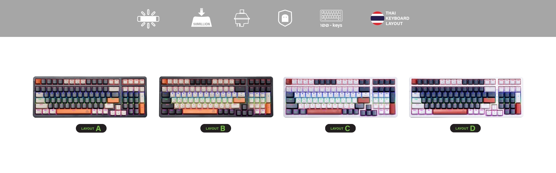 คีย์บอร์ดเกมมิ่ง รุ่น TYPE CMK1 ตัวนี้ออกแบบมาเพื่อการเล่นเกมโดยเฉพาะ ทำให้การใช้งาน แม่นยำ ตอบสนองคำสั่งในการกดได้อย่างรวดเร็ว ไฟตัวนี้เป็น Mini RGB มีระบบ Anti Ghosting 100 ปุ่มเลยทีเดียว ตัดปัญหาการกดปุ่มแล้วไม่ทำงานได้เลย รองรับการกดปุ่มถึง 50 ล้านครั้ง ใช้ทำงานหรือเล่นเกมส์กันได้ยาวๆ